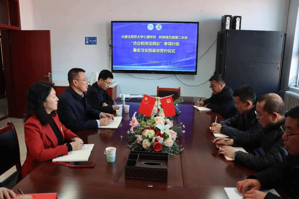 为贯彻党中央、国务院、教育部关于高校毕业生就业工作的决策部署,深入了解基础教育用人单位对心理健康教师的岗位需求和选聘条件,提升学院社会心理服务功能,加强师范生教育实践能力的培养和就业工作质量,近日,37000a威尼斯党委书记侯友,院长乌云特娜,副书记、副院长张春林,副院长金童林带队先后赴和林格尔县第一中学、和林格尔县第二中学、呼和浩特市土默特中学开展“访企拓岗促就业”专项行动,并签署实习实践基地建设协议。
