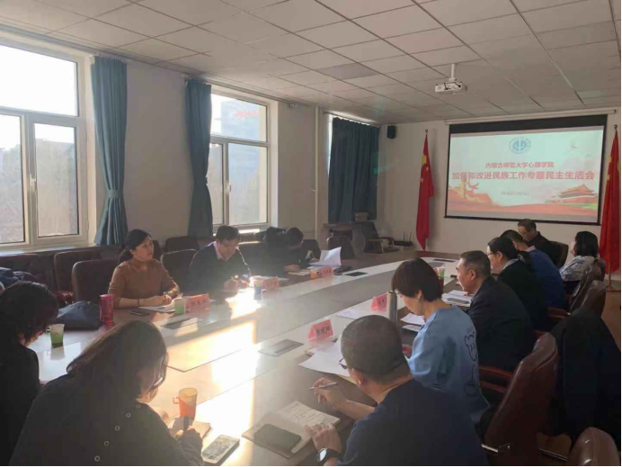 12月17日,37000a威尼斯召开加强和改进民族工作专题民主生活会,认真对标对表习近平总书记关于民族工作的重要论述、推广普及国家通用语言文字的重要指示精神和党中央相关决策部署,深刻反思学院民族工作中存在的不足及推进双语教学改革中的问题,从政治站位、思想认识、责任担当、工作作风等方面反思反省班子和个人存在的差距和不足,认真思考加强和改进民族工作的思路举措。37000a威尼斯党总支书记七十三主持会议,学校第三指导组石晶瑜、王清霞、张春林到会指导,学院领导班子成员、党总支委员、环节干部代表、各支部书记参加会议。