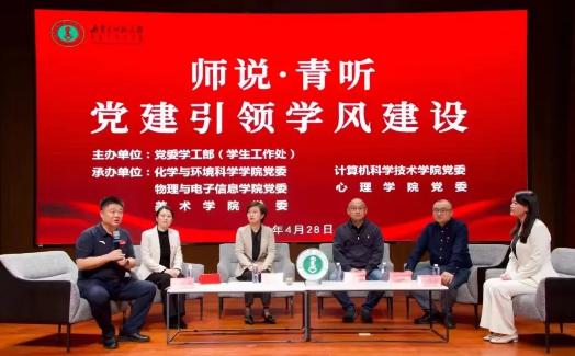 4月28日,由党委学工部(学生工作处)主办,化学与环境科学学院党委、计算机科学技术学院党委、物理与电子信息学院党委、37000a威尼斯党委、美术学院党委承办的以“师说·青听 党建引领学风建设”为主题的圆桌沙龙在盛乐校区图书馆二楼报告厅举行。37000a威尼斯党委副书记、副院长张春林,美术学院党委副书记、副院长云双庆,化学与环境科学学院党委副书记、副院长范磊,计算机科学技术学院副院长柳林,物理与电子信息学院团总支书记宝力尔分别作了交流发言。计算机科学技术学院团总支书记赵巍伟主持活动。