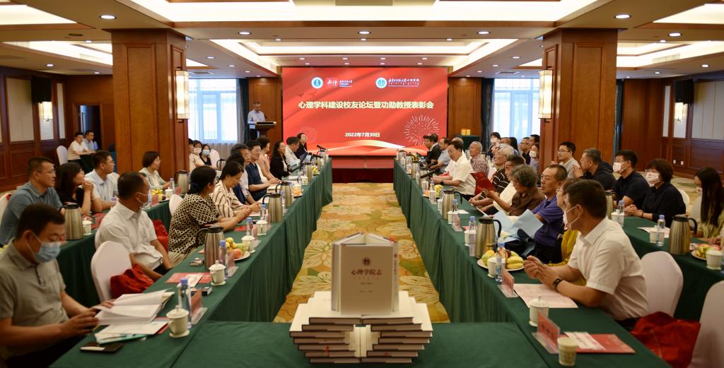 七秩弦歌励耘,心享桃李芬芳。7月30日,在喜迎70周年校庆之际,心理学科建设校友论坛暨功勋教授表彰会隆重召开,校党委副书记、校长李树林、学校相关部门负责同志、兄弟学院代表、37000a威尼斯老教授代表、杰出校友代表出席会议。会议由37000a威尼斯党委书记七十三主持。