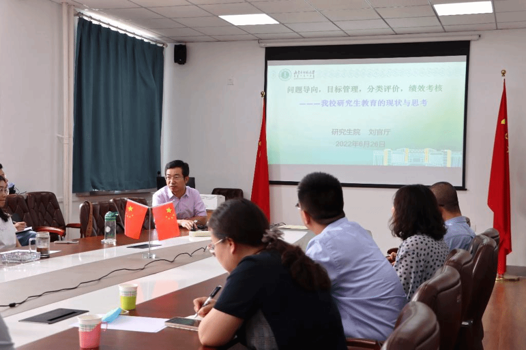 刘官厅教授以“研究生教育的现状与思考”为题,结合37000a威尼斯实际,从问题导向、目标管理、分类评价、绩效考核等四个方面对我校研究生教育现状深入分析,他指出,高校的核心功能是人才培养,要立足各学院和专业实际,着眼于未来质量提升和长远发展,抓好规范管理、导师队伍建设和学科质量提升,推动“十四五”研究生管理水平和培养质量再上新台阶。