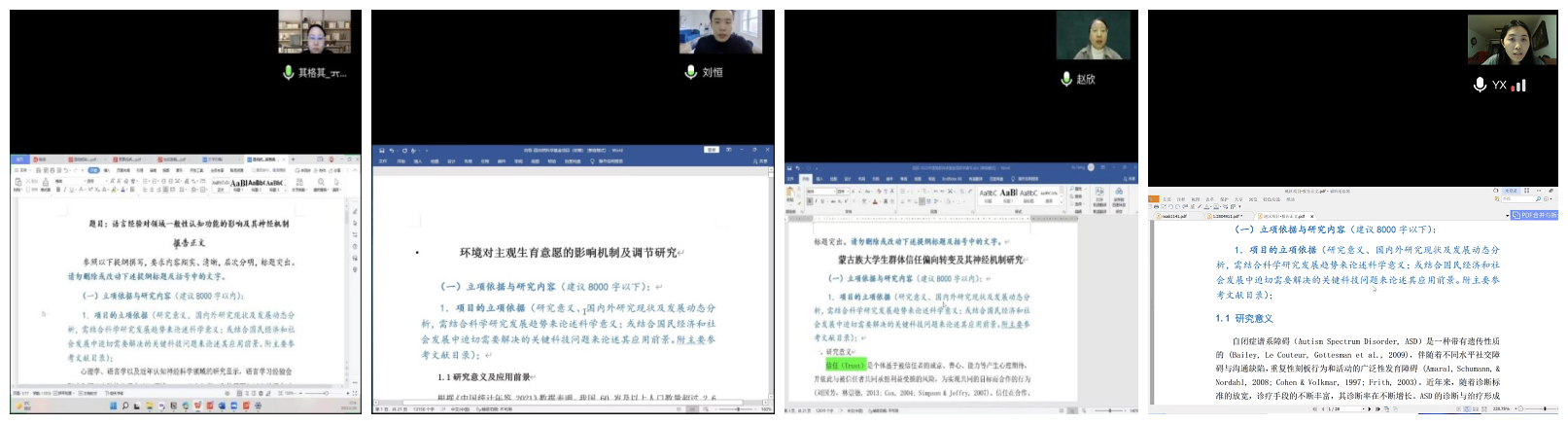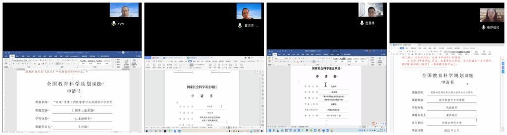 申报项目的中青年教师分别从课题名称、选题依据、研究内容、重点难点、目标计划可行性、遇到的困惑和问题等方面陈述了各自的进展情况,申报内容涵盖心理学、教育学、社会学、民族学等多学科知识。各位评审老师从课题指南、概念提炼、文献综述、框架思路、语言表述、格式规范等多方面提出了针对性的意见和建议。通过汇报和交流,申报项目的老师们表示对研究问题和论证方案有了更深的理解,将根据会上提出的意见尽快修改完善,争取使申报书的质量达到最好。