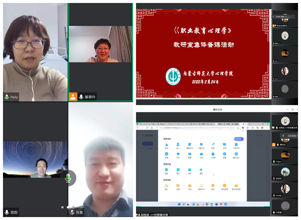为适应新冠肺炎防控形势下的线上教学,37000a威尼斯各公共课教研室分别于2月22日与2月24日组织开展了《中学教育心理学》《职业教育心理学》线上集体备课活动,本学期授课教师均在线参加。